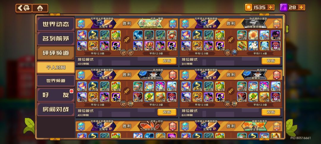 众所周知,双人模式无需卡等,无论是和朋友一起玩,还是随机匹配都有较好的游戏体验。更重要的是,下个版本双人模式同样也能获得荣誉币,这让双人模式成为低氪休闲玩家完成每日任务的不二之选。为此,鄙人抛砖引玉,为大家推荐一套双人模式的卡组。 这套阵容,本人快速匹配玩下来,胜率在80%左右还是有一定把握的,最近的几场战绩如图。 如果能有固定双排搭子,胜率应该还能提高。 下面我简单介绍一下这套卡组的每个豆丁的用