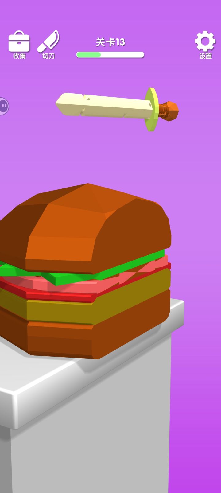 玩法非常简单,拉武器向下就可以切割食物了。
