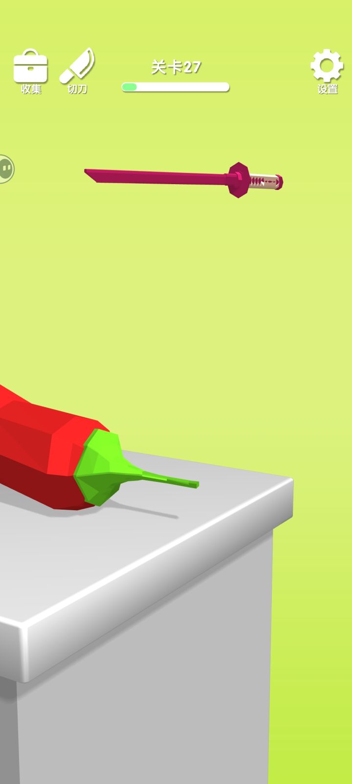 玩法就是操纵刀具向下切割物品,比较简单不用动脑。