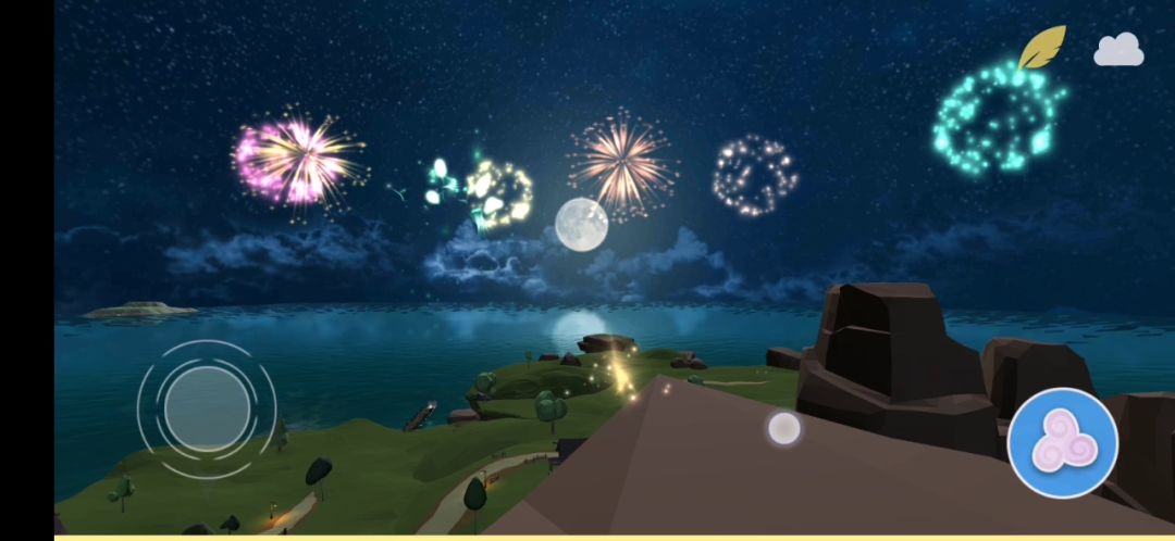 自己之前玩水晶没有修复完没得到光之精灵,也没有在最美的海面那得到闪电精灵,回来看了别人通关视频才重新得到,修复了树木花草,点亮了灯,在海边月下看到了烟花~好美哦