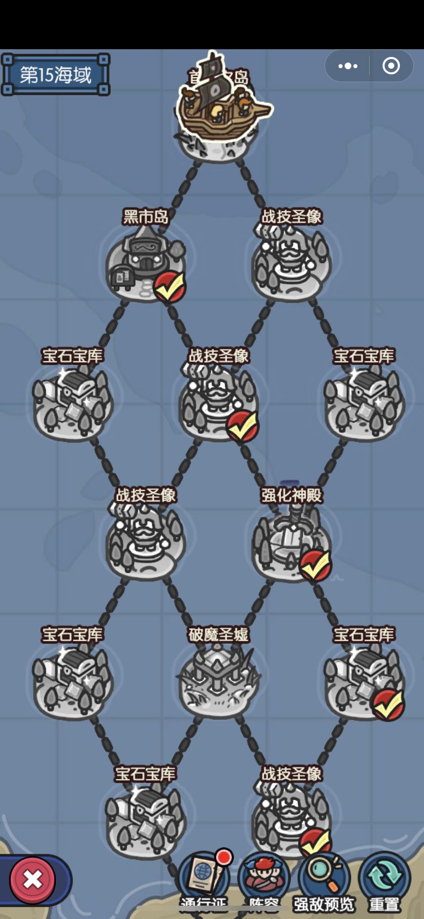 先晒一下排行榜[表情_酷] 我第一次是卡在了第七海域的boss关,然后我重置了一次,在十三海域的boss关重置了三次,最后在十五海域boss关重置了一次,目前还卡在最后一个boss关 给还没体验的玩家来点建议: 1、第一次进入考虑到养成难度,推荐选择雷电初始开局,选上雷电附加闪电链,这样前期可以过的容易一点。当你卡在第三第四甚至第六七海域后,重置就可以选择火球或者冰锥了,第一次重置还是推荐选择火球