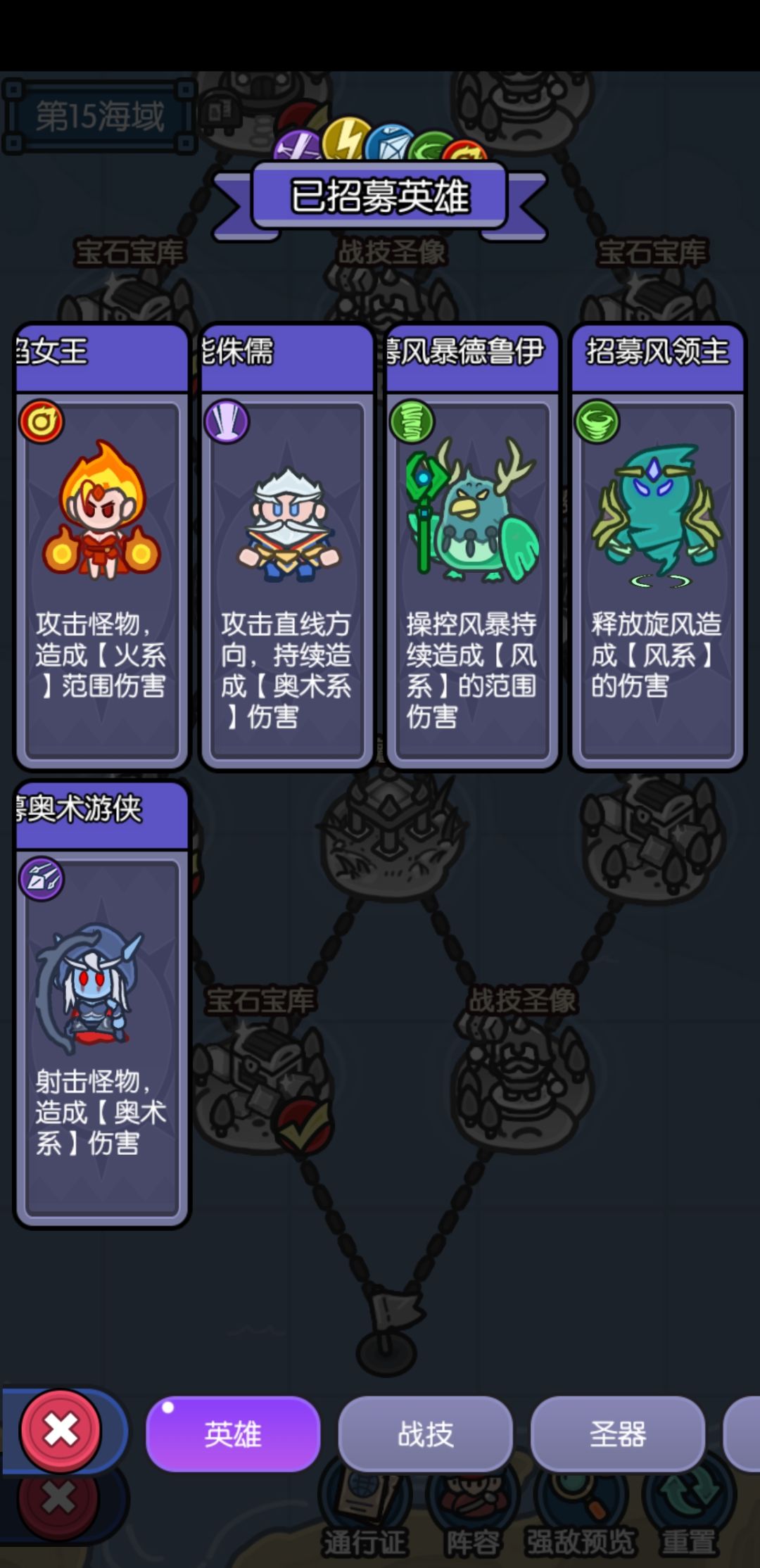id:42872363550622 #游戏攻略 海域想一次通关是不可能的,最少运气爆棚也需要两次,所以攻略也是分两部分的下面进入正题 1、1-10海域开局选择雷电之王 雷击链 其他英雄选择:风暴 冰王 山岭 侏儒 风领主 宝石选择:攻击力 暴击率 暴击伤害 攻击间隔 忽视 减伤次数(必须拿一个有冰川领主不拿不容易过) 保险起见 城墙血量也可以拿一个 其他宝石根据自身英雄选择 路线选择:黑