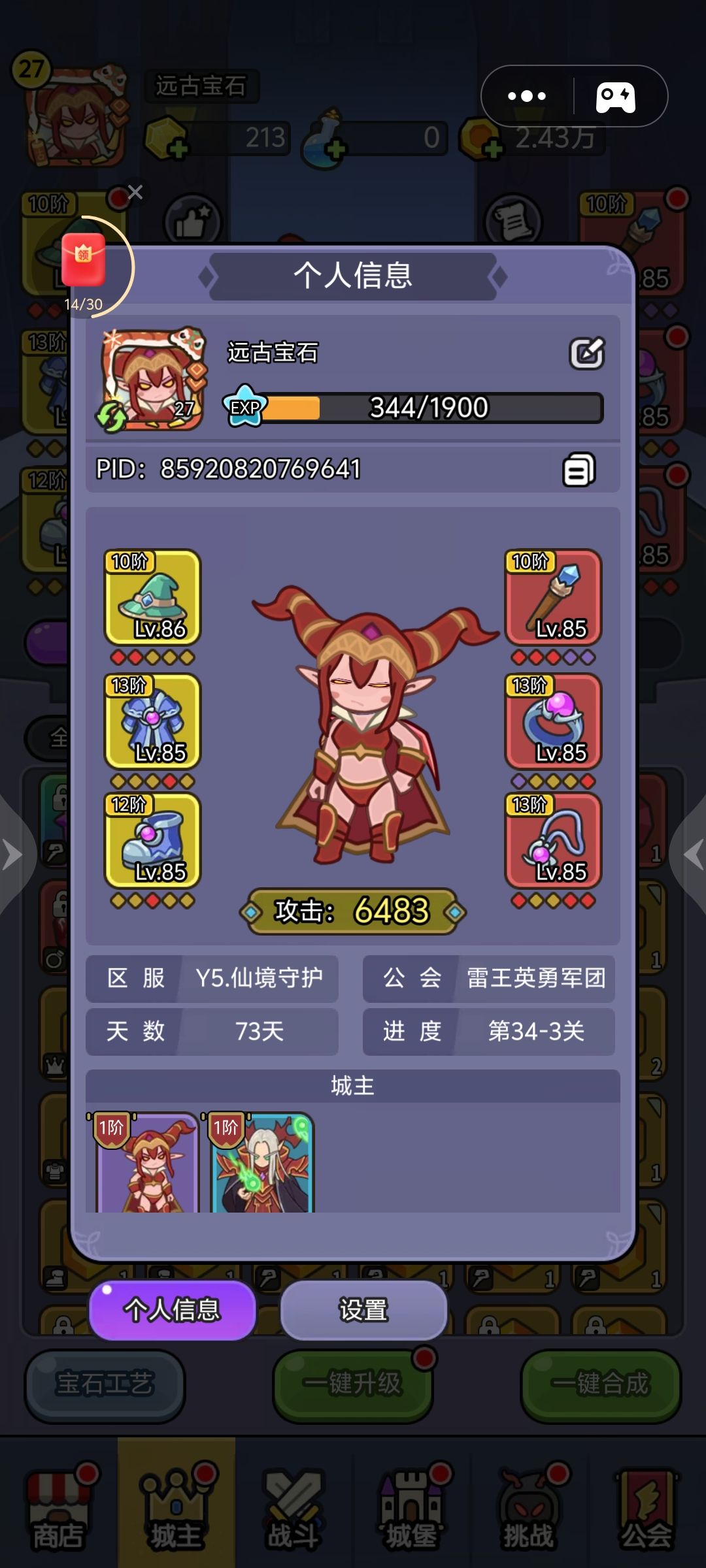 #攻略白嫖党 开局一个终身卡,直接买上火女一路升级火女卡牌,开个小号全部拉进工会,天天换满碎片,快速拉上26级,宝石方面必须拿到火女的红色点燃百分比宝石,还有能点燃怪物时间的,还要洗异常6个红色就是240了,能把不能点燃的怪也点燃,配上点燃公式图在上面。这样基本能过完一赛区,跟上大部队节奏。钻石全部拿去买古物不是红色古物不要,活动奖励全部白嫖,能存的就存一直存到能换皮肤为止,有些活动全部是智商税,