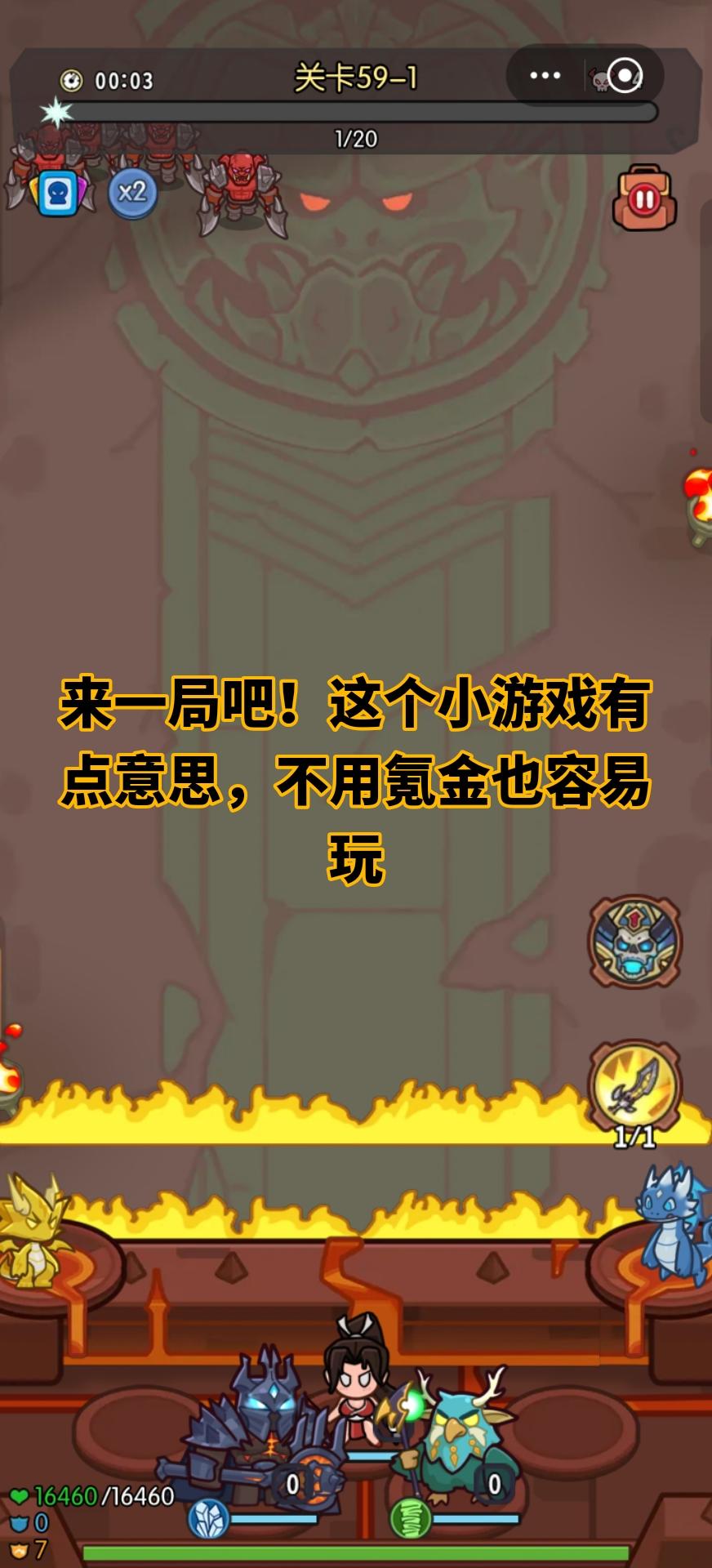 来一局吧!这个小游戏有点意思,不用氪金也容易玩。