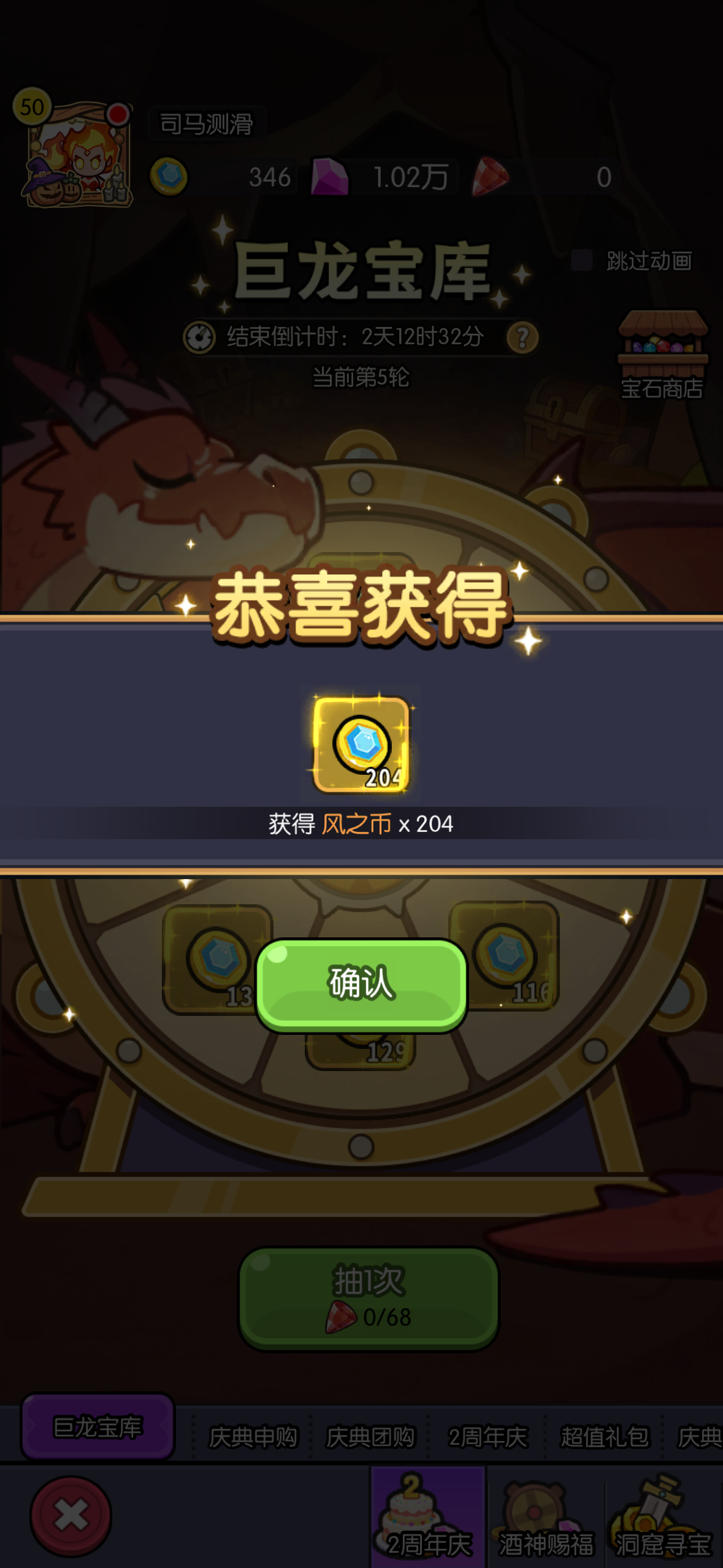 二周年期间洗练金秒杀80次出了,合成又出了个金忽视,二周年皮肤开的火女二代很不错。璀璨宝箱开到了神话石头。 #神界二周年