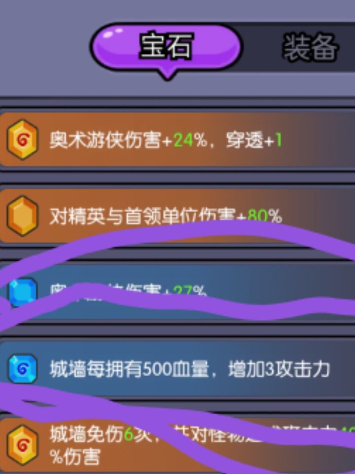 第二套48章节以后 部宝石:异常延时 百爆头 火女燃烧 城墙血量 攻击间隔 衣服位置:异常延时 火女烧热 火女范围 城墙血量 攻击间隔 鞋子位置:异常延时 火女范围 火女燃烧地板 城墙血量 攻击间隔 法杖位置:异常延时 百爆仗 暴击率 城墙血量 初始火女 戒指位置:异常延时 初始冰王 穿透 城墙血量龙卷燃烧百分比 项链位置:异常延时 初始龙卷 穿透 城墙血量 火女百分比 注意:火女必须26级,有城主蛋哥,开局必须点出炎爆,遇见盾牌兵 冰王换山岭 如果没有龙卷燃烧戒指(没有盾牌兵用树精 有盾牌兵用熊猫)