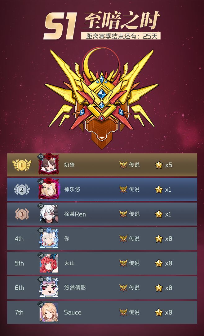 各位调查员大家好吖~S1赛季正式上线,很多玩家开启上分模式,现在已经有玩家上传说咯!一起仰望排行榜上的大神叭~-------------写一张夸夸卡:关注我们了解更多信息,有各种福利哦~~官方QQ群:映月城与电子姬官方7群(群号:466261570)微博:公众号:映月城与电子姬(微信号:FB-PTM)官方抖音号:映月城与电子姬(抖音号:Phantomoon_game)欢迎前往A