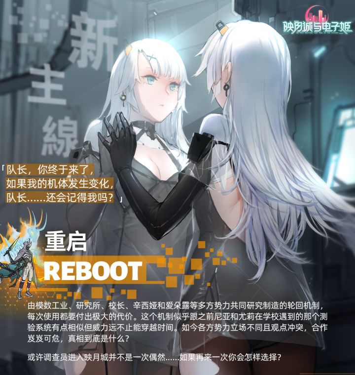 由模数工业、研究所、校长、辛西娅和爱朵露等多方势力共同研究制造的轮回机制,每次使用都要付出极大的代价。这个机制似乎跟之前尼亚和尤莉在学校遇到的那个测验系统有点相似但威力远不止能穿越时间。如今各方势力立场不同且观点冲突,合作岌岌可危,真相到底是什么?或许调查员进入映月城并不是一次偶然......如果再来一次你会怎样选择?6月9日更新完成后,主线剧情开启第十三章。---------------