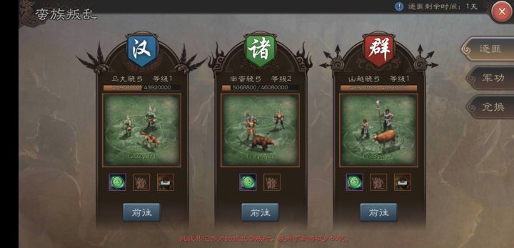 【玩家投稿】如何利用蛮族活动快速升级服务器:29服-偷渡阴平军团名:纵横灬天下角色名:纵横灬郑纤纤各位【三威】的主公,大家好,之前我发布了一个如何快速升级的升级的帖子,在最后提到了蛮族活动,也是快速升级的一个方法,但由于当时我参加蛮族活动少,所以只是一笔带过,今天,就把蛮族活动给补上。每周六周日的蛮族活动,是快速提升武将等级的最重要的一个活动,没有之一。因为如果刷野,一个行军令只能打一个
