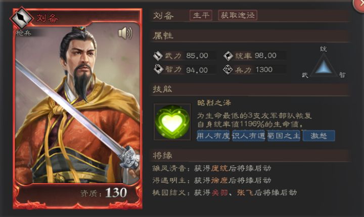 在三国这片战场上,有多少英雄豪杰为了自己的雄图霸业,可谓是奉献了自己的一生。而真正流传下来被后人所熟知的不过寥寥数人,家喻户晓的人物中,必有刘备一席之地。这位出身草根的帝王血脉,在游戏中又有着何种传奇史诗呢?各位主公请和阿蝉一起来看看吧!天下兴亡,匹夫有责汉昭烈帝刘备是一位响当当的英雄人物,他的性格宽厚,仁爱,爱民,在他任职平原相时,将府中的财物施舍给百姓以度饥荒,自己也和府中之人同席同食,所