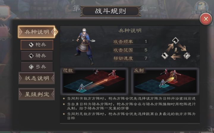 所在区服:20服-濡须之战角色昵称:乔帮主大家好,我是20区乔帮主,今天跟大家交流一下三威中排兵布阵的心得。因为我主要是用2枪4弓,所以基本是说这个阵形,其他阵形可以参考,这东西一通百通,互通的。在说布阵之前,有一个基本知识是必须要知道的:就是兵种的行军路线,知道这一点,才能有针对性的布阵。大家先看几张图:OK,从上边三张图中,我们知道了:枪兵是直线上有敌人就直线前进,直线没敌人是攻击