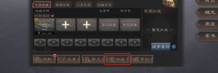 《三国志威力无双》近日迎来全面更新,万众期待的新春版本“降蛮纳福”已正式上线,诸多新春活动携海量福利火热来袭!不仅如此,更有布政系统、坐骑系统等全新玩法,开启三国战场新篇章。今日阿蝉就带主公们一起,打开布阵系统,助力各位主公快速发展,早日称霸天下!轻松布政 自动发展当各位主公创建或加入军团之后,即可在军团概览中进入布政系统。军团内所有玩家,皆可通过布政系统,使用自动伐寇、自动采集和政令颁布三