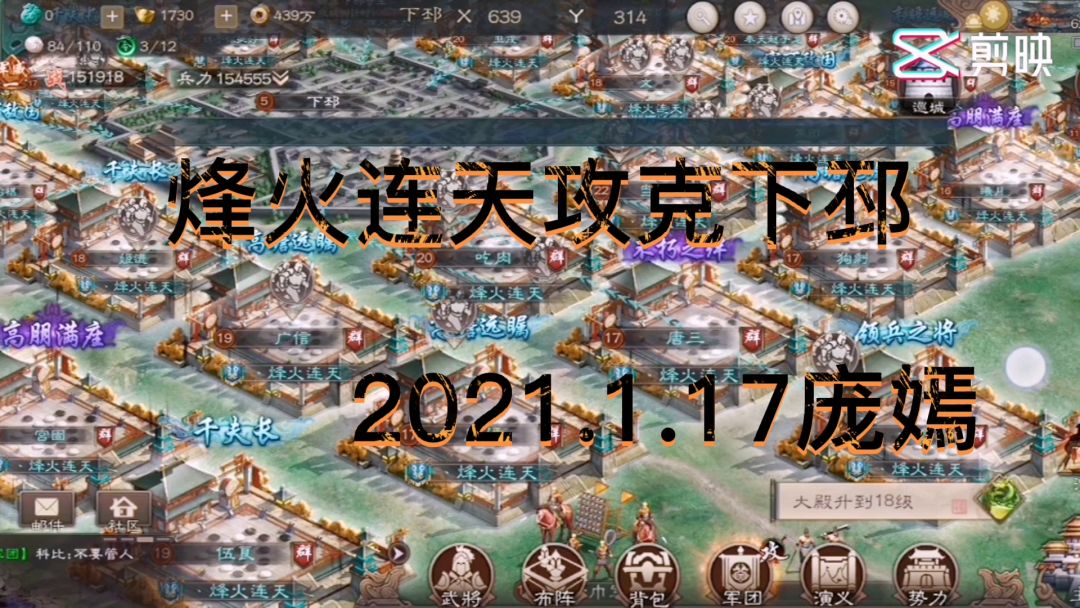 2021.1.17晚9点30成功拿下5级城下邳!!! 开心,本来5级团!突然团长跑路,所有小伙伴两天时间将一个新军团冲到5级,并第三个拿下5级下邳!!!😘😘😘😘