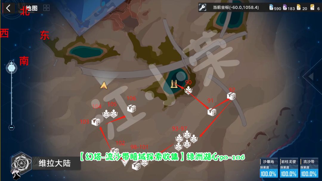 【幻塔-流沙带暗域探索收集】绿洲湖心90-106!100%探索保姆攻略
