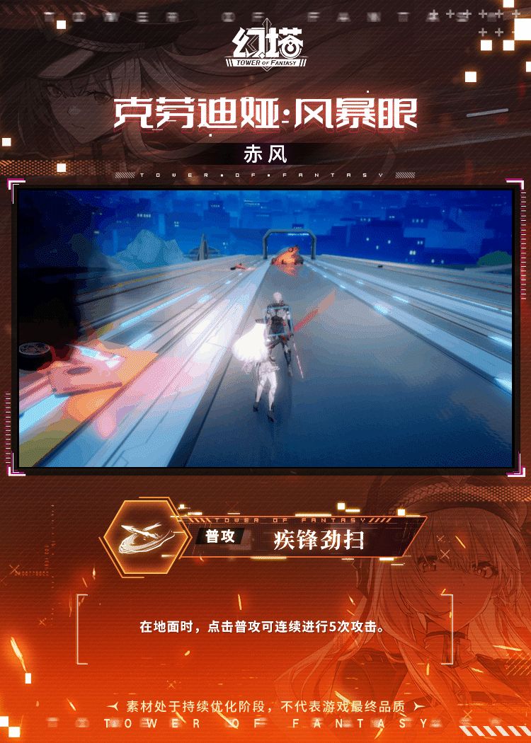 ——疯狂的“正义”,是否可以被称之为正义?我想,这是个好课题。 +++克劳迪娅·风暴眼普攻+++ 在地面时,点击普攻可连续进行5次攻击;使用第1次至第4次普攻中,长按普攻可触发狂刃流闪;长按普攻可触发猎风。向目标发射子弹,命中目标造成伤害。 滞空时,点击普攻可在空中连续进行5次攻击,并消耗耐力;长按普攻可触发覆地万钧,从空中下落,落地过程中对命中的敌人造成伤害,落地后对附近目标造成伤害。 +++克
