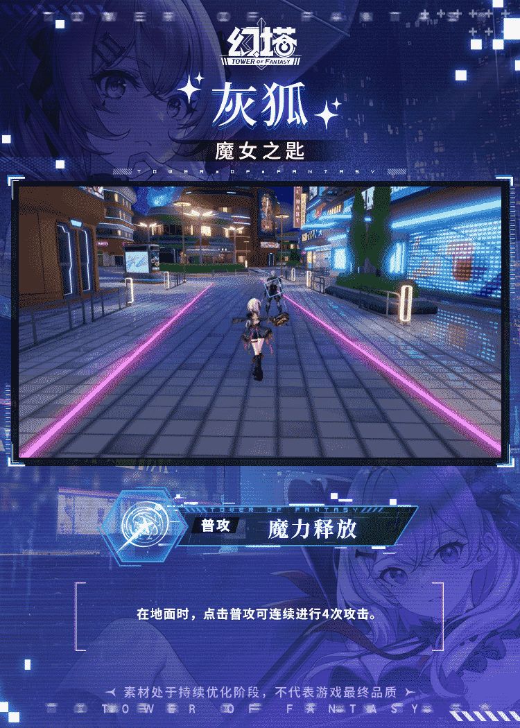 ——我最喜欢的游戏是《时之魔女战记》,你要和我一起玩吗? +++灰狐普攻+++ 在地面时,点击普攻可连续进行4次攻击;使用第3次至第4次普攻中,长按普攻可触发棘轮炸弹。滞空时,点击普攻可连续进行4次攻击,并消耗耐力;长按普攻,从空中下落,落地过程中对命中的敌人造成伤害,落地后对附近目标造成伤害。 在地面普攻时,若当前处于时之魔女状态,在地面时点击普攻可连续进行4次攻击,滞空时点击普攻可连续进行4次
