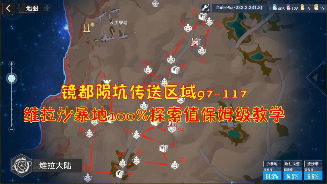 #我在维拉大冒险#幻塔:镜都陨坑传送区域97-117!维拉沙暴地100%探索值保姆级教学