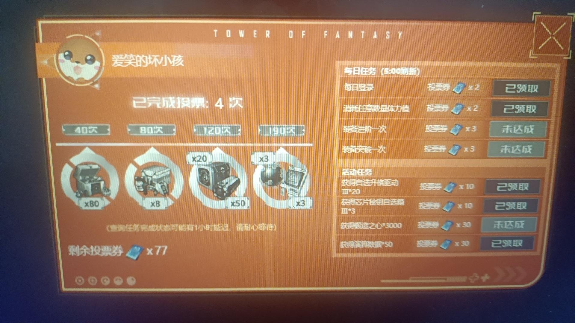 这个装备突破和进化,怎么搞都完成不了,玩个毛线,投票也只能一张张投,还做啥呀。拉倒吧,垃圾玩意