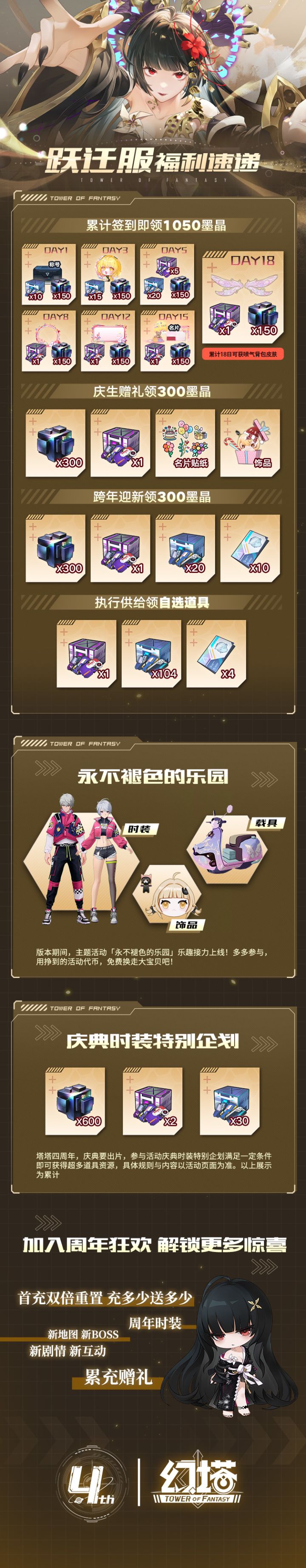 塔塔四周年,庆典要出片~积极投稿「庆典时装搭配形象」,交出你的出片作业吧。庆典时装4选1,穿着浮光絮语、瑰丽梦魇、陷落绮梦或酒蛾醉恋以上任一时装,投稿有效,其余时装不在本次活动范围内嗒~活动投稿与投票均有好礼相送,人气获选作品更有大礼等你来捧回家哦!更多活动规则与内容请以游戏内上线为准>>>