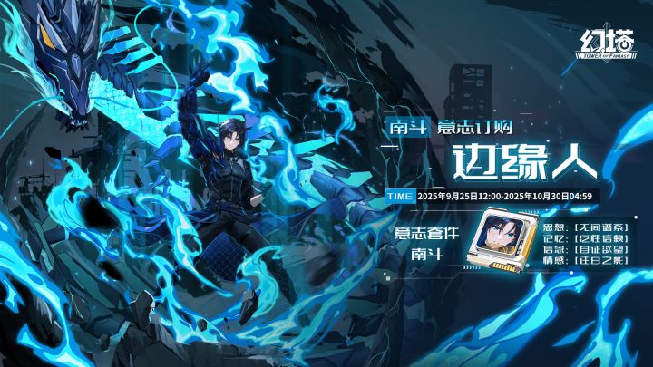 「既是潜伏的龙,也是那片隐藏的深海。」★南斗限定订购★即将开启++活动时间++2025年9月25日12:00-2025年10月30日04:59++活动说明++✦ 活动期间,授权者在“南斗订购活动”中可使用【赤核】进行订购。限定武器【青霜】获取概率将大幅提升,初次获取可解锁限定拟态【南斗】。每次订购除了获得随机武器之外还会额外获得1个【回火铸金】,每120个回火铸金可兑换当期UP 青霜。✦