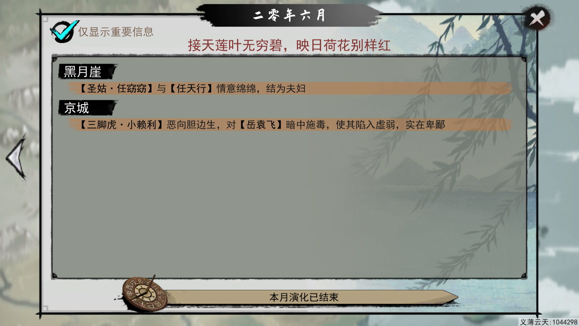 各位大侠:本次 《我的侠客》“云溪溯流”测试将在 8月31日中午12点 结束,届时服务器将关闭。感谢大侠们这12天来的热情陪伴与耐心体验!本测暴露出的问题与不足,我们会结合大侠们的意见不断去调整、优化。正如制作人包子的信中所说:玩家的不满,就是我们的错误!我们会抓紧修改,争取让大侠们可以满意!还请大侠们继续关注《我的侠客》,关注预约或进入官方q群可第一时间获得最新消息。再次感谢大侠们的