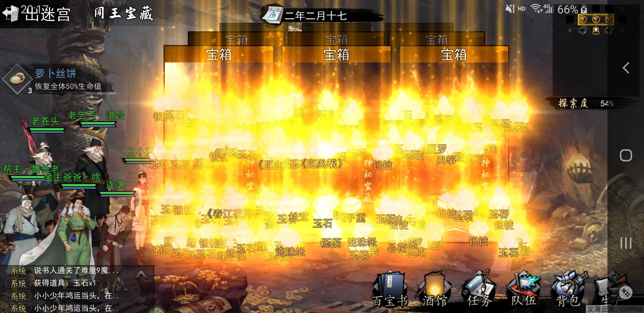 时隔10天,又要说再见了,但是为什么我莫名不爽呢?首先是刚出来那天,主角成了个b!不过之后修复了 然后一周目的我火速高僧结局 熟悉的酒馆,熟悉的老板娘。不对,老板娘去进修了配音,还是御姐音,爱了爱了。但是“拯救阿月”的侠客行貌似多了一点东西。全服夺宝!!!看起来好厉害的样子!!!然而,在丢了几个小侠客后,我突然想起来我是非酋来着。看了这东西又和我无缘了。继续肝周目吧,直接开完整,然