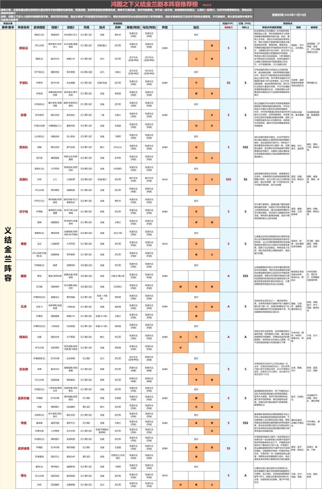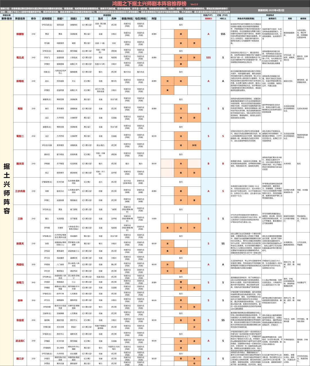 晚上好兄弟们,新一起配将阵容表姗姗来迟,欢迎大家查阅!关索目前表现不是很良好所以没上,蜀香刘禅刘备的目前良好但是待考证哦,其余阵容基本也是中规中矩啦,有些没写上去的大多都是变种,大家战场遇见的较多的!有更好的阵容欢迎大家讨论哈!感谢支持!