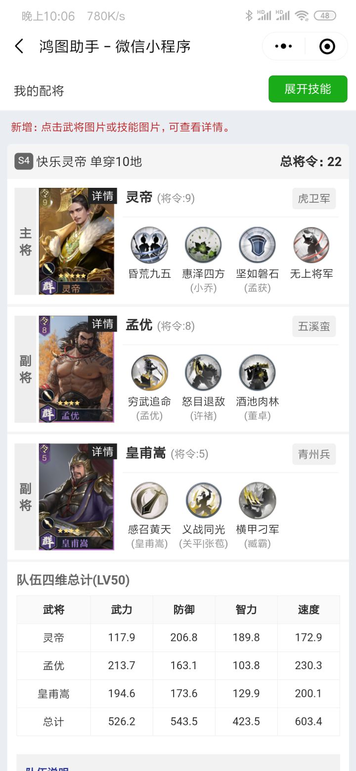 主公们晚上好呀,不少主公刚欣赏完Tank为鸿图带来的新主题曲后,已经在期待新武将的爆料了,本次更新的4名武将分别是廖化、SP马超、SP吕蒙、王异!他们其中两人拥有全新的机制,另外两人则有极强的技能效果,主公在阅读时不妨思索下他们的实战运用,那么话不多说一起来看看吧!廖化兵种:枪兵主将技-瞒天过海技能效果范围内的敌军共造成120%武力伤害,并提高蜀国武将20%伤害,持续10秒,技能冷却20