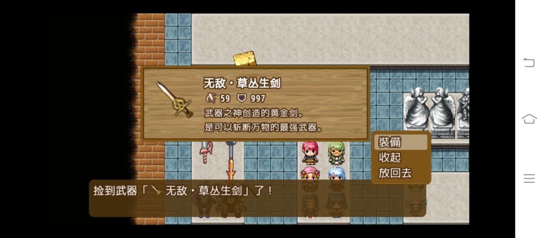 发现没有人写隐藏结局,就来记录一下,有闲或者强迫症玩家可以试试: 达成条件:地下城1000层通关,获得武器“武子”,获得其他所有npc作为武器(需要NPC在背包/武器库/货架上),此时会触发剧情: 回到村里,魔王会出现在家门口,质问武子是否要毁灭世界: 选择否魔王会离开,选择是就会和觉醒的魔王战斗(战力比普通魔王厉害但你都是地下城通关的人了还是一刀秒了)然后触发特殊结局:武子灭世