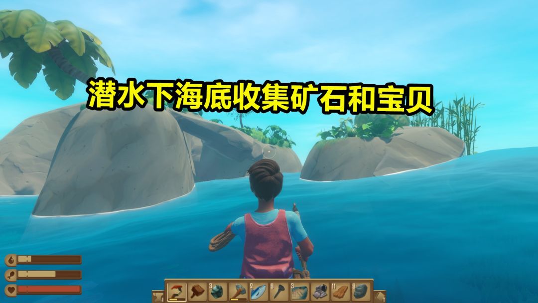 木筏求生 02 偶遇宝岛潜水下海底收集矿石和宝贝