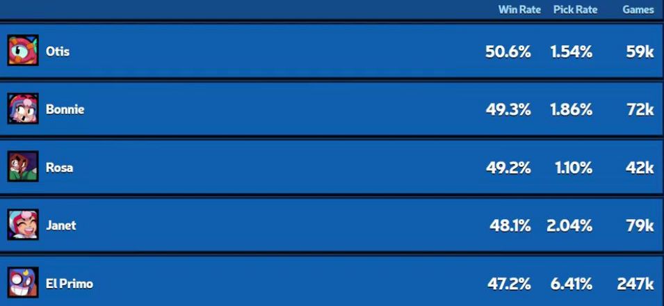 嗨喽,各位小伙伴们大家好,这里是小编花子,荒野乱斗是一个用有多种玩法、多种英雄的一款游戏,一直在一堆英雄中反复横跳不知道怎么培养?这期给大家带来了主流地图中的各个英雄的胜率排名,希望对大家有帮助。 荒野决斗 一:奥帝斯 二:邦尼 三:罗莎 四:珍妮特 五:艾尔普利莫 新英雄不愧是新英雄,拥有远程骚扰能力和他的小伙伴小海星,小海星粘住敌人,敌人直接三秒钟无法攻击,单机模式确实很强 邦尼双形态英雄,可