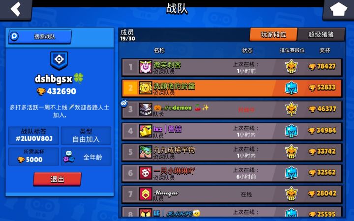 荒野乱斗战队搜索:dshbgsx🍀队长可以带你上杯副队长有空也会带五万杯升副队战队是养老战队,但是还要多活跃一点,半年不上线踢#发现好游戏