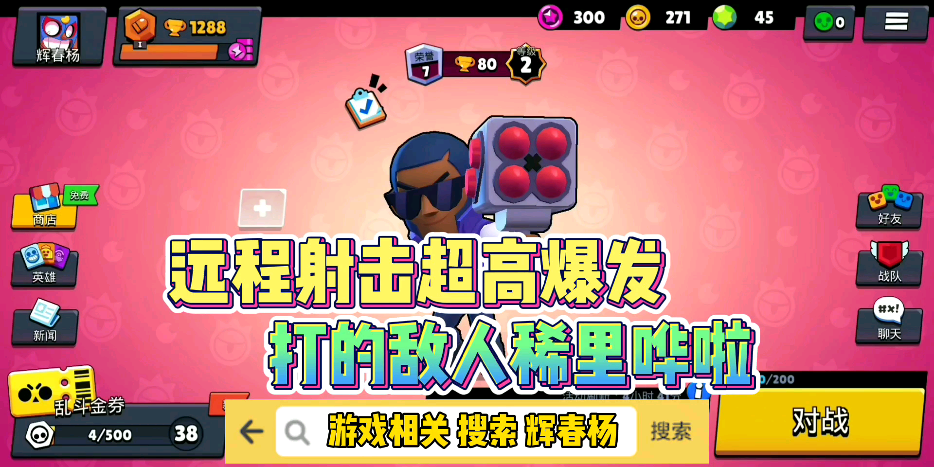辉春杨:荒野乱斗,远程射击超高爆发,打的敌人稀里哗啦!