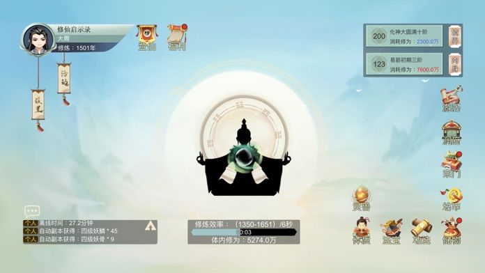 剧情完成前几个剧情拿到升仙令,就可以加入宗门,先(宗门大殿)掌门请安,得到宗门贡献后学习本源和攻击功法,并装备。选择一个宗门任务开始积累贡献。到坊市买炉鼎,学习丹方器方来解锁炼丹和炼器。