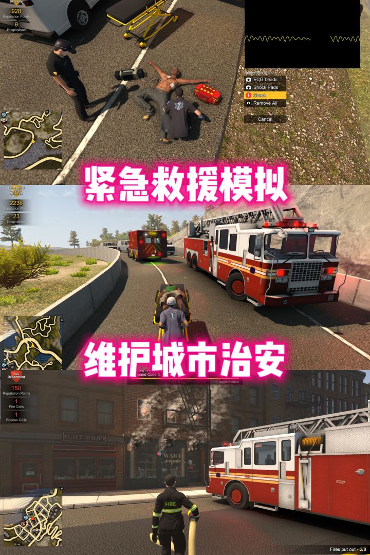 🚑 【一人分饰三角的爽快体验】 今天当急救医生抢救伤员,明天变身消防员怒怼大火,后天还能客串交警追捕逃犯——24小时拯救世界不重样! 🔥 【超真实救援玩法】 • 用液压钳"手撕"事故车(解压程度100%) • 拿着灭火器冲进火场(记得先浇湿自己!) • 给NPC做心肺复苏(按太快会把病人按吐血) 🚒 【沙雕队友在线翻车】 多人联机时你会遇到: - 把救护车开进河里的憨憨 - 用灭