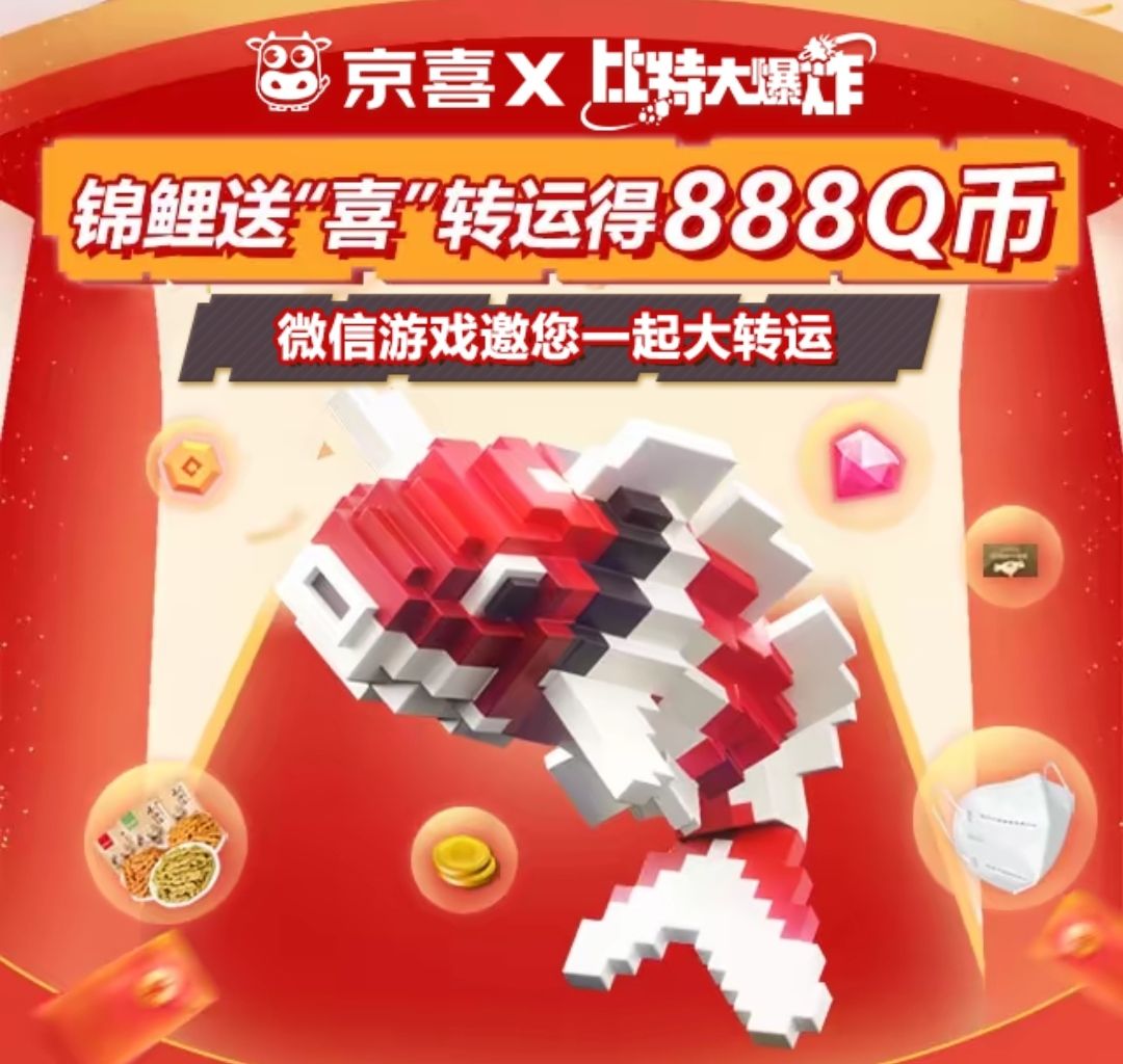 各位飞行员们大家好,送福利送不停的西施又来啦! 没错,看到这个标题,想必大家都已经猜到一二了!正所谓是锦鲤来送喜,好运传千里,据说只要拜一拜这只幸运锦鲤,就能转运赢大礼哦~ 京喜 X 比特大爆炸这一次究竟给大家带来了哪些诱人的奖品呢? 西施我也已经等不及啦,一起来看看吧! 专属大礼,预约即得 现在立刻预约《比特大爆炸》,即得头像框、金币888等微信游戏专属大礼,同时只要预约即可get一张转运券