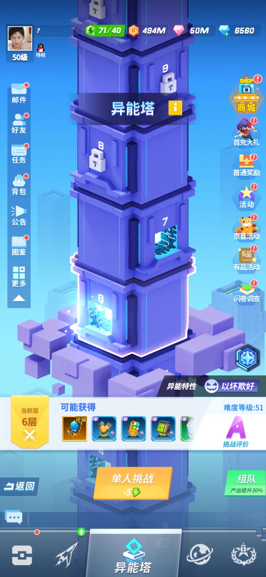 优秀的《比特大爆炸》飞行员们,玩了这么久游戏,有没有通过主线25章,开启异能塔呢?到达异能塔后,每向上一层,都会随机遇到不同的异能特性,给敌人带来不同的增强效果,从而增加关卡难度。而飞行员们也可以通过挑战异能塔获得异能石,给自己的战机和武器带来更多加成效果。 你以为这就完了?今天告诉飞行员们一个更刺激的消息!当飞行员到达异能塔第六层后,就可以在冒险模式的赏金任务里开启一个新玩法,那就是,异能研究所