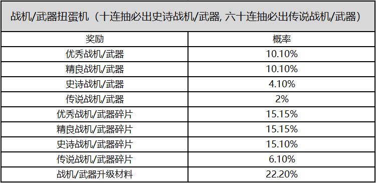 亲爱的飞行员: 《比特大爆炸》先遣服抽奖概率如下(此抽奖概率只适用于先遣服,可能将于后续版本进行调整,最终概率以全面不删档测试时发布的抽奖概率公示为准):