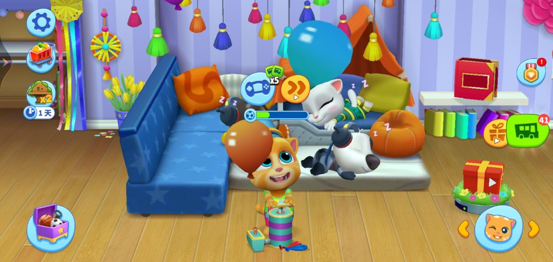 小伙伴们有没有幻想过,可以建造一个属于自己的房子,不仅可以把好朋友叫来,还希望可以与朋友们在同一个屋檐下度过一段难忘的美好时光。那么,现在如你所愿,《汤姆猫总动员》这款超可爱游戏的上线可以实现你所想的事情。游戏中我们将拥有一个独特的公寓,享受自由自在的休闲生活。 当然我们进入公寓后发现没有那么多小伙伴,有点孤独。但是也不用心急哦,只要我们每天登录游戏,就会陆续有新的成员到来。除了需要照顾游戏角色的