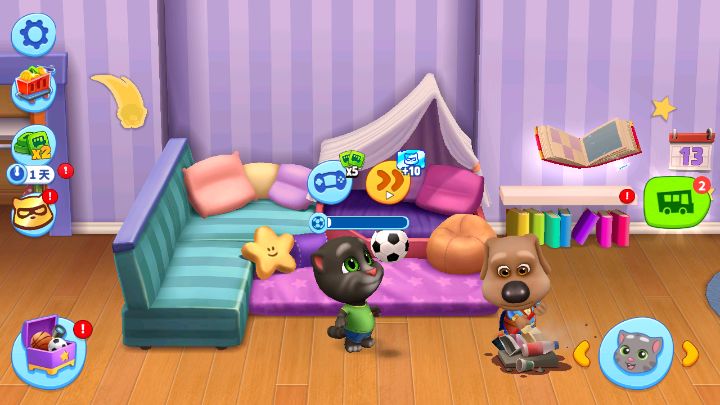 《汤姆猫总动员》作为一款养成类游戏,其独特之处在于我们可以同时照顾6名“汤姆猫会说话”系列的成员,无论是观感还是玩法都更具丰富化,让我们更能贴近汤姆猫家庭的生活日常。下面给大家带来简单易懂的玩法教学。 游戏中互动的操作方式也十分简单:角色的互动需求会在头像冒出来,我们可以左右拖拽到相对应的场景,或者直接点击头上的气泡也能实现场景的转移。 美食烹饪: 游戏中我们可以进行一些美食的烹饪制作,给小伙