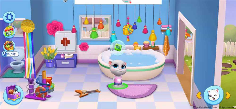 与以往会说话汤姆猫IP的休闲养成类游戏相比,《汤姆猫总动员》 汇集了其中的所有的六位成员,但是在游戏玩法上,依然是遵循着入门门槛低和主打休闲益智类的路线,在上线之后就受到了很多玩家朋友们的喜欢。 1. 游戏场景设置精美。游戏场景主要设置了里面和外面两个院子。室内主要设计了大浴缸的厕所,客厅里还拥有开放式的厨房,沙发群以及足够大的衣柜。玩具箱里面有十分丰富的道具,而且还可以在室内场景内随意的摆放,并