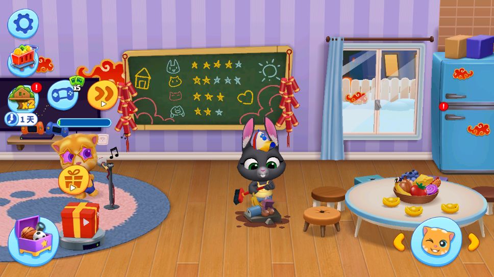 新年新气象,而在汤姆猫的家庭也是喜气洋洋,充满活力的哦!在《汤姆猫总动员》中,我们可以在同一间公寓中与六只宠物一起度过美好的生活,不仅有汤姆猫,安吉拉两只耳熟能详的经典IP宠物外,还有四只全新的小宠物可以随着签到天数免费解锁哦。 在新年主题的公寓中,大家有发现什么新奇的地方吗?仔细观察我们可以发现,厨房那边已经挂上了红红火火的小灯笼,鞭炮的饰品也挂上了小黑板。同时,插满红包的年橘树也搬了上来,是