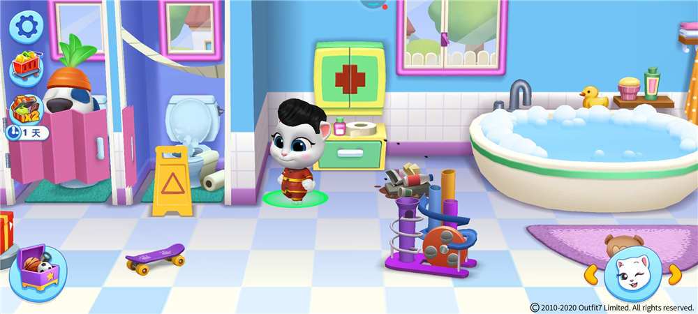 汤姆猫家族叫你来一起玩耍啦,在《汤姆猫总动员》中,我们可以接触到汤姆猫,安吉拉,狗狗本等等众多不同宠物带来的欢乐。我们可以和它们一起探索在总动员中每日发生的琐事,一起欢快地玩耍游戏,悉心照顾好每一个成员,还能够一起把这个新家打造成一个更美丽的环境哦。 如何进入到装饰界面呢?首先,我们可以移步到后花园中,在汽车旁边找到一个宝箱。点击宝箱就能进入到更换装饰的界面。如果想装饰其他界面的家具,我们就要先
