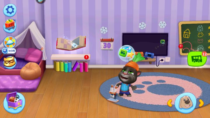 《汤姆猫总动员》是一款多角色萌宠养成游戏,游戏中你需要督促“会说话的汤姆猫家族”成员按时睡觉,按时吃饭;你还可以带它们一起出去游玩,收集神秘的礼物。我们在日常互动中,每次完成后宠物头上都有个气泡,其中就有一颗星星,那么星星是用来做什么的呢? 在客厅电视旁边的黑板上。点击进去就可以看到各个方面角色们的成绩。总共有五个方面:拼图、娱乐、厨艺、互动和绘画。每集齐一个星星就会获得一个购物袋,购物袋中的奖