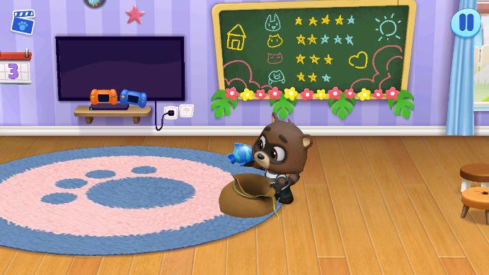 《汤姆猫总动员》是一款由能够模拟养成6只宠物的休闲治愈系手游。它们都居住在同个公寓中,因此我们们需要更加细心照顾它们,使它们每天无忧无虑的生活在一起!在这期间,汤姆猫还可以和小伙伴们在家园外面的水池里面嬉戏;在院子里种植新鲜的蔬菜;还可以乘坐巴士去购物哦。那么巴士是在哪里呢?我们把地图划到最右边的院子场景就可以看到啦。每次乘坐巴士需要看前面的绿色车牌是否有足够的巴士币,以及能够坐多少次。当我们