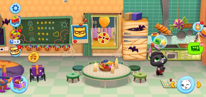 《汤姆猫总动员》游戏中宠物们有一个公寓,我们可以给它装扮浴室、厨房、客厅、前院、后院五个地方。空间环境确实还是比较大的,也适合多位汤姆猫成员们居住。那么这么大的房子,肯定得好好装饰一番。那么随着万圣节的到来,我们怎样才能获得万圣节限定的奖励和道具呢? 首先就是万圣节限定的食物,这个就直接在冰箱购买就好啦,如果错过了以后就可能很难获得了哟。如果你的金币充足的话,可以一下子囤多一点这些新奇的食物。