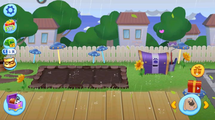 不知道大家有没有注意到《汤姆猫总动员》中变化莫测的天气呢?因为宠物比较多,所以我们大多数时间都是呆在家里陪伴宠物处理接踵而来的事物。那么我们在忙于解决宠物的需求的同时,也可以多多关注房子的窗户。通过窗户向外部望去,其实汤姆猫的世界也是有着很真实的天气系统的哦。 在后院看会更加明显,有时候会出现狂风骤雨的天气,还会伴随着响雷一起出现,树叶都被大风刮得随地跑。当雨慢慢停下,上方的乌云也会相继褪去,