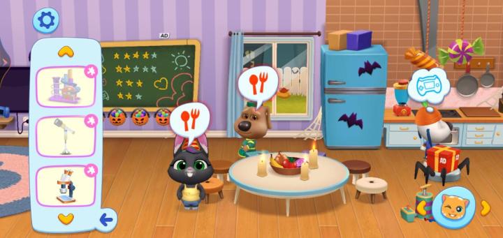 《汤姆猫总动员》这款游戏仍然沿用了汤姆猫系列游戏之前的入手门槛低,操作简单的游戏风格,虽然游戏角色有所增加,但是玩家玩起来丝毫没有任何的压力。但是,虽然游戏入门很快,但也有不少的注意事项需要玩家注意。1.每天都要与汤姆猫聊天,进行互动,从而保持游戏的活跃度。2.点击每位家族成员头顶上的图标,便可帮助其完成愿望,当房间内存有成员们想要完成的事情时,点击图标便可只身前往,再点击对应的位置即可。3