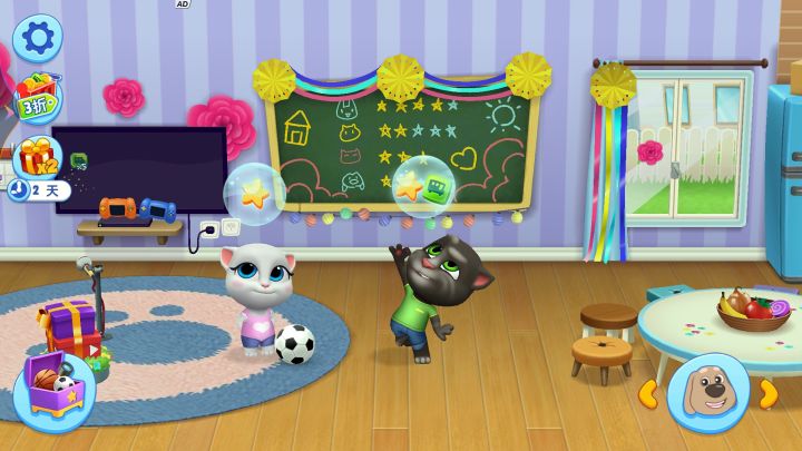 《汤姆猫总动员》这款游戏最大的魅力所在莫不过于是角色上的,从之前的单一养成变成了“六合一”!六只可爱小宠物齐聚一堂,共同生活在一个屋檐下,享受独居带来的自由感觉和奇妙时光。在这里,每天都有惊喜的意外等着你,你必须做到时刻的准备,有时候,我们可爱的汤姆猫想要上厕所了,但是“可恶”的是,在汤姆猫提出要求的时候,安吉拉和贝卡兔就已经“捷足先登”。可怜的汤姆猫只能乖乖等待它们出来了呢,更可恶的是,可能等