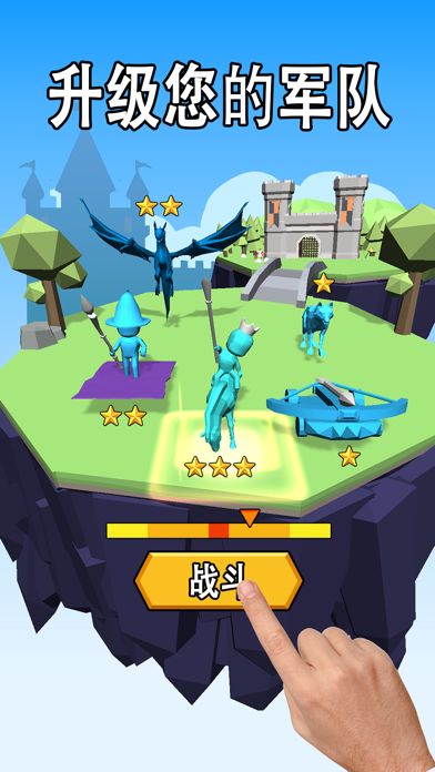 组建一支庞大的军队,攻打敌人的城堡。购买并升级您的士兵,时间到位及时部署兵种到战场上,以获得胜利!